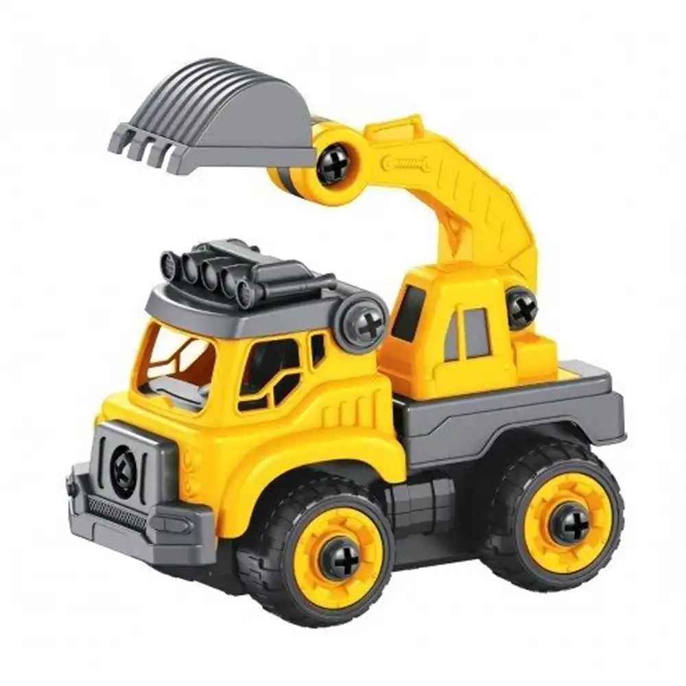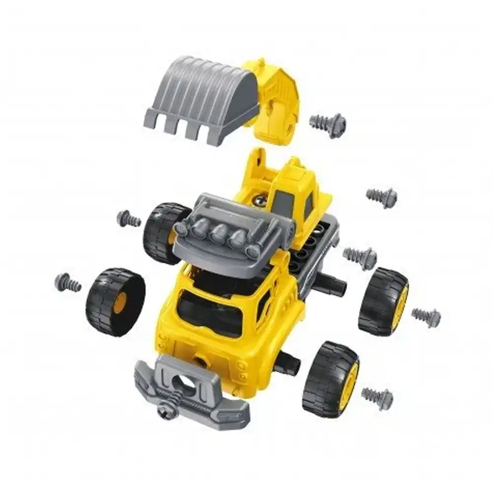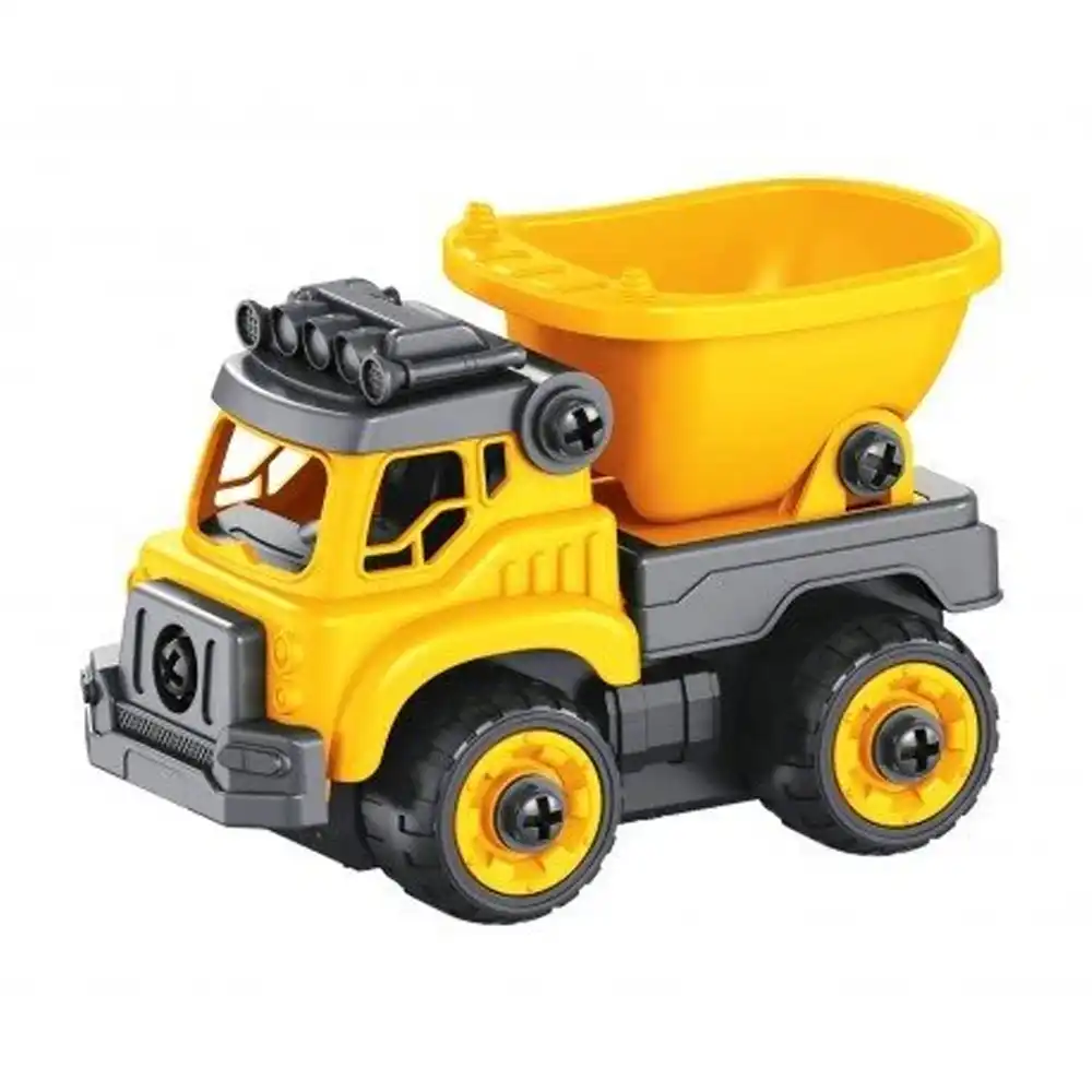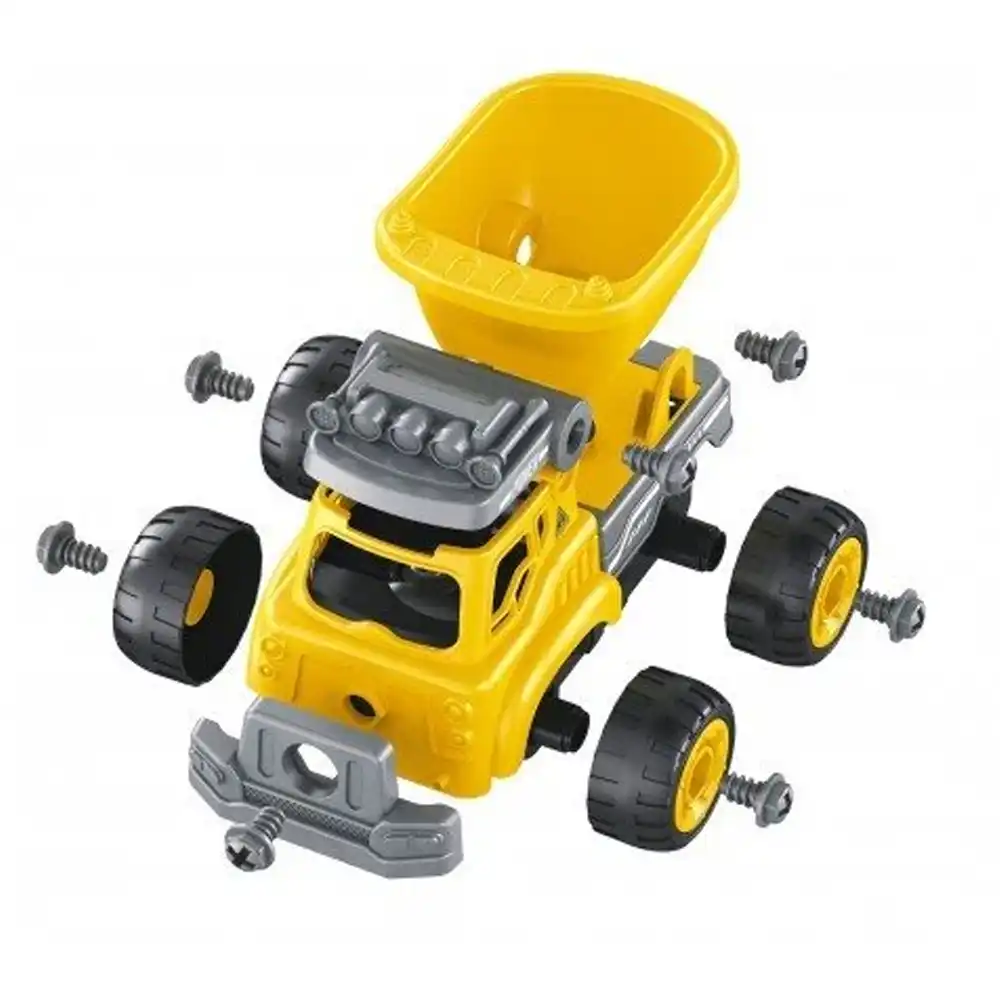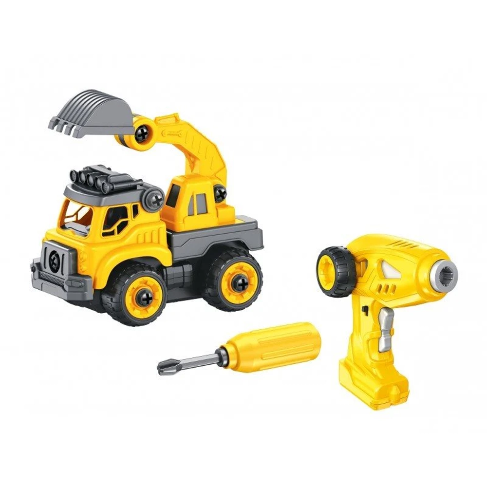 משאית צהובה מרשימה להרכבה עצמית עם מברגה חשמלית. לאחר ההרכבה – נוסעת, מטעינה ופורקת באמצעות שלט רדיו. כולל סוללה נטענת וכבל USB להטענה.