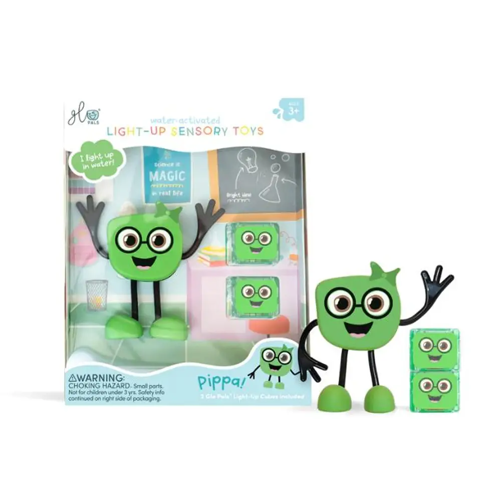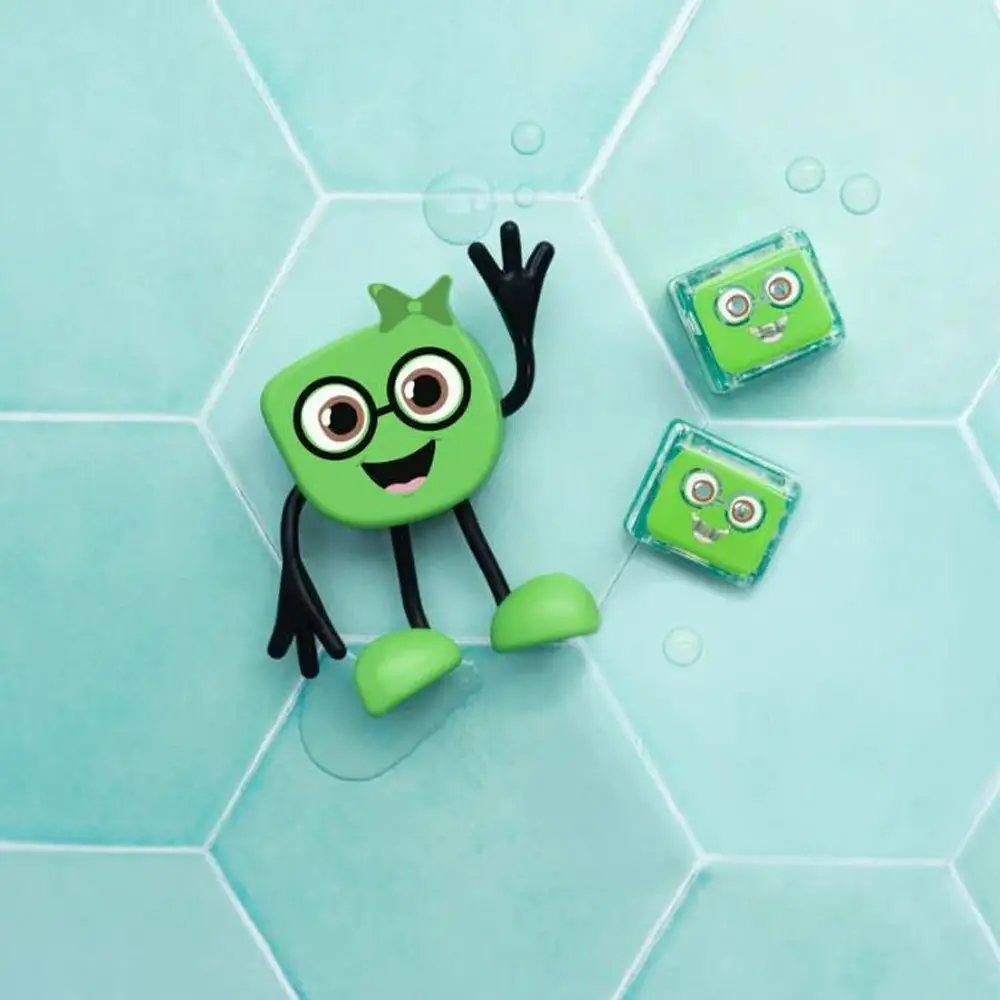 סט הכולל בובת חבר זוהרת במים ו-2 קוביות המופעלות במגע עם מים.
