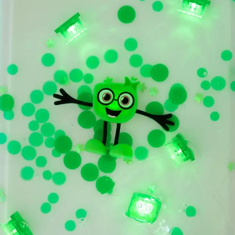 הכניסו קוביית תאורה לחלק האחורי של הבובה הזוהרת, זרקו אותה למים וצפו בה נדלקת!אפשר גם לשחרר את כל הקוביות למים וליצור חגיגה של אור וצבע!